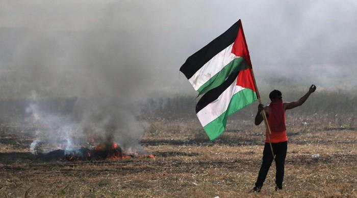 Protester holding Palestinian flags during protest at Israel-Gaza border, in the southern Gaza Strip. Photo: ReutersA Palestinian was killed by an Israeli air strike on the Gaza border early Thursday, the health ministry in the Palestinian enclave...from GEO TV - World https://ift.tt/2GCjOaP